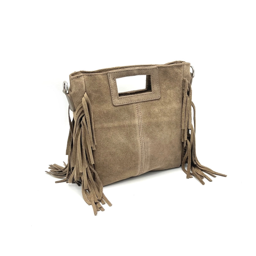 Μοναδική δερμάτινη καστόρινη τσάντα σε μοντέρνο σχέδιο με κρόσσια στα πλαϊνά, που χαρίζουν boho και στιλάτο χαρακτήρα. Διαθέτει κομψή χειρολαβή-άνοιγμα στο επάνω μέρος, καθώς και μακρύ αποσπώμενο λουρί για χρήση στον ώμο ή χιαστί. Ιδανική για καθημερινές εμφανίσεις, συνδυάζοντας άνεση, πρακτικότητα και ιδιαίτερο στυλ.