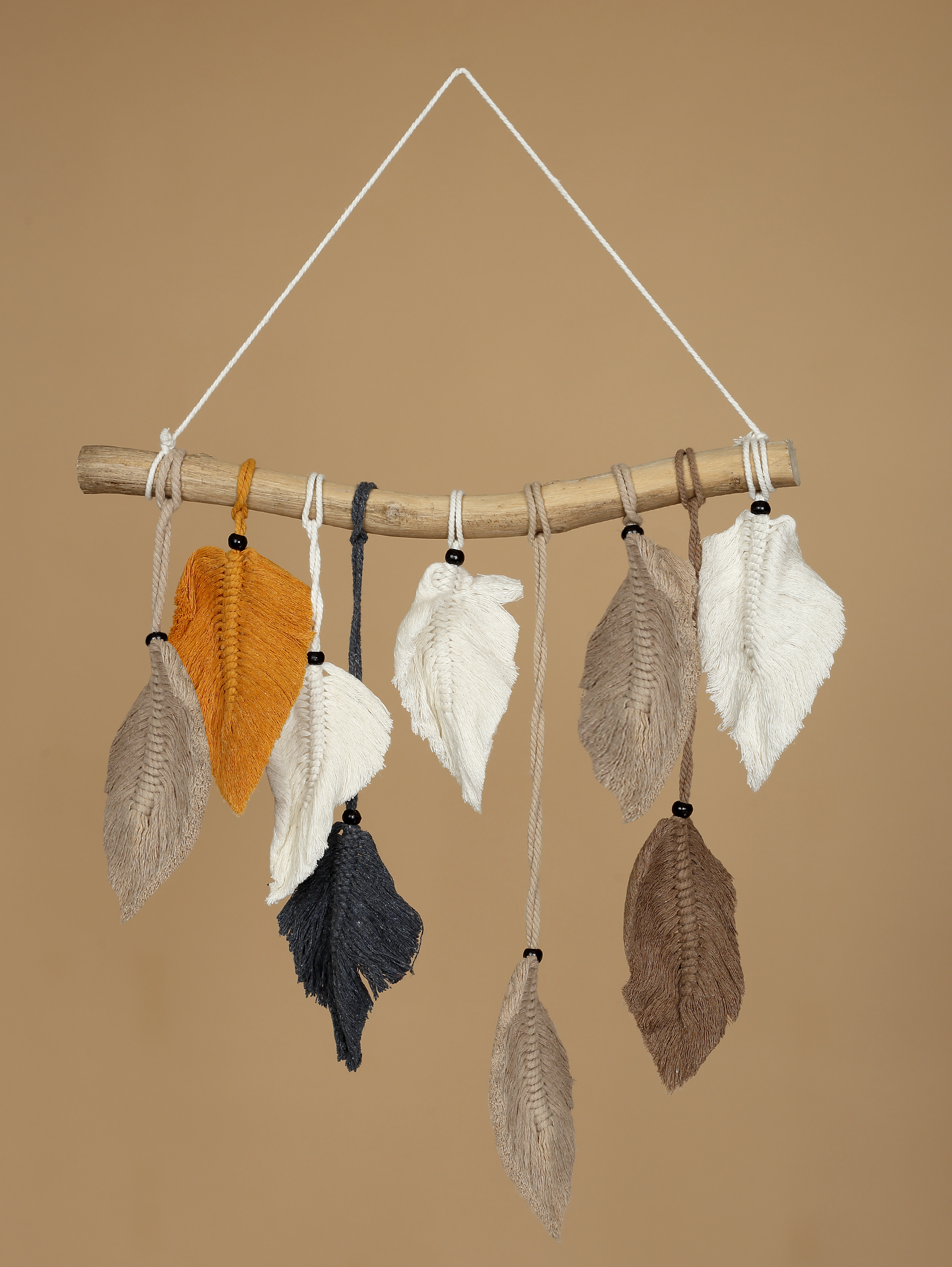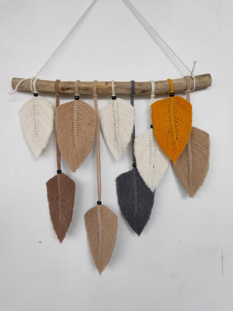 Δώστε φυσική και boho αισθητική στον χώρο σας με αυτό το μοναδικό χειροποίητο επιτοίχιο διακοσμητικό. Φτιαγμένο με προσοχή στη λεπτομέρεια, συνδυάζει το φυσικό ξύλο με μακραμέ φύλλα σε γήινες και μοντέρνες αποχρώσεις.