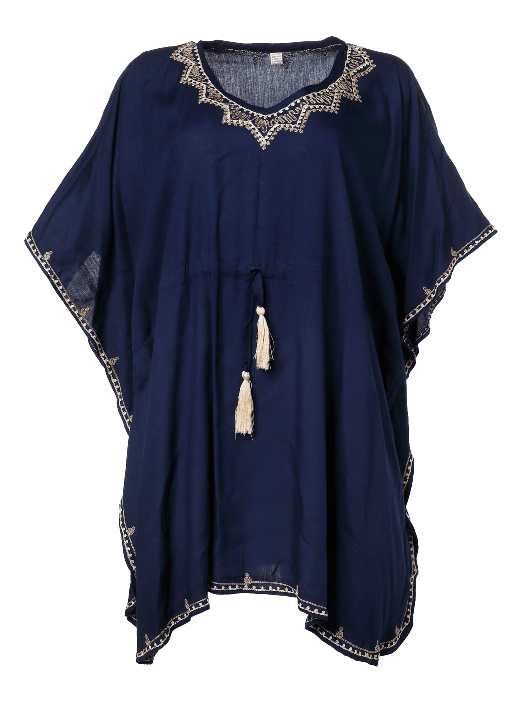 Ανανεώστε το καλοκαιρινό σας στυλ με αυτό το υπέροχο βαμβακερό μπουζοφόρεμα σε μπλε χρώμα, με κεντήματα σε χρυσές αποχρώσεις. Ελαφρύ και αέρινο, προσφέρει δροσερή εφαρμογή και κομψότητα, ενώ προσαρμόζεται εύκολα σε κάθε σωματότυπο χάρη στη ρυθμιζόμενη μέση με κορδόνι και φούντες.