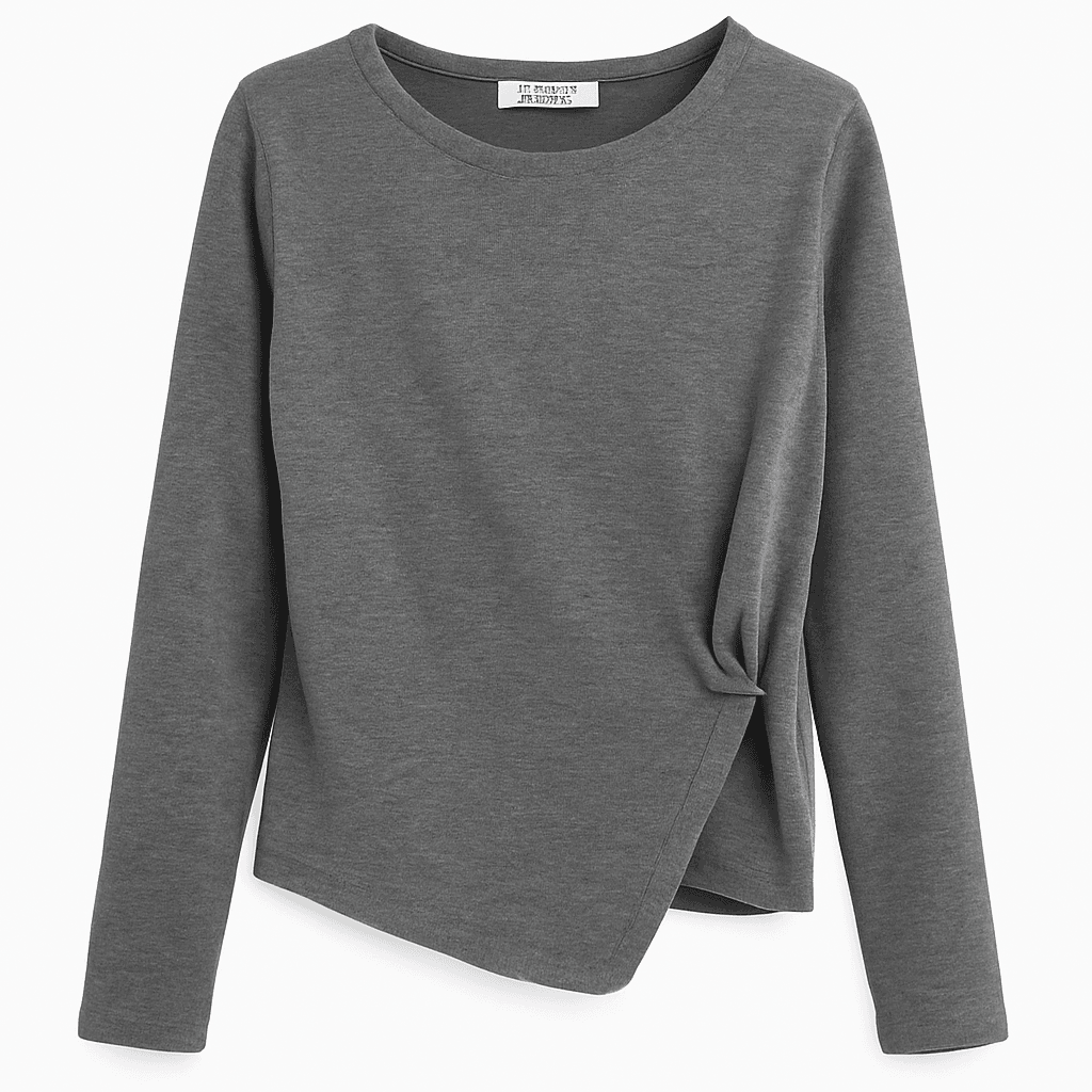 Μοντέρνα και κομψή μπλούζα σε γκρι απόχρωση, σχεδιασμένη με διακριτική σούρα στο πλάι που κολακεύει τη σιλουέτα και χαρίζει αδύνατο εφέ στην περιοχή της κοιλιάς.ONE SIZE