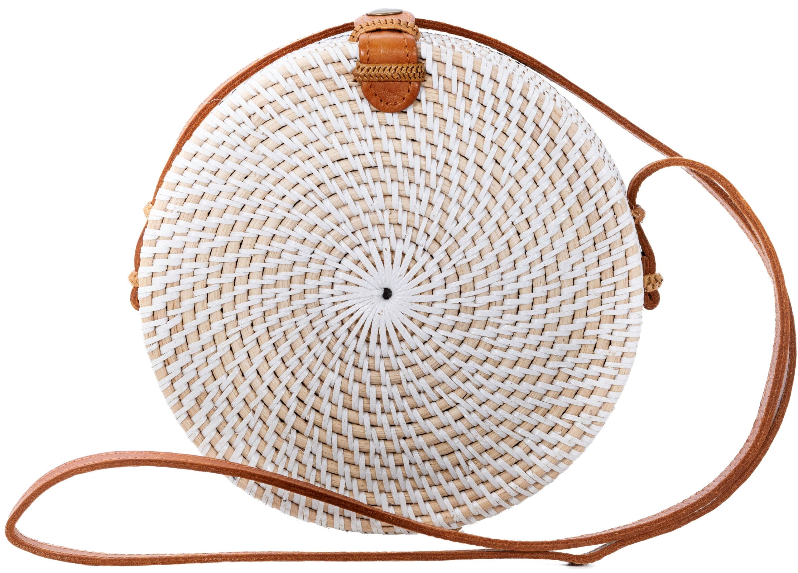 Χειροποίητη στρογγυλή τσάντα από φυσικό rattan, ιδανική για καλοκαιρινές εξορμήσεις. Διαθέτει γνήσιο δερμάτινο λουρί για άνετη μεταφορά και ύφασμα εσωτερικά, που προστατεύει τα προσωπικά σας αντικείμενα. Συνδυάζει παραδοσιακή τεχνική με μοντέρνο στυλ, για καθημερινές ή πιο ιδιαίτερες εμφανίσεις.